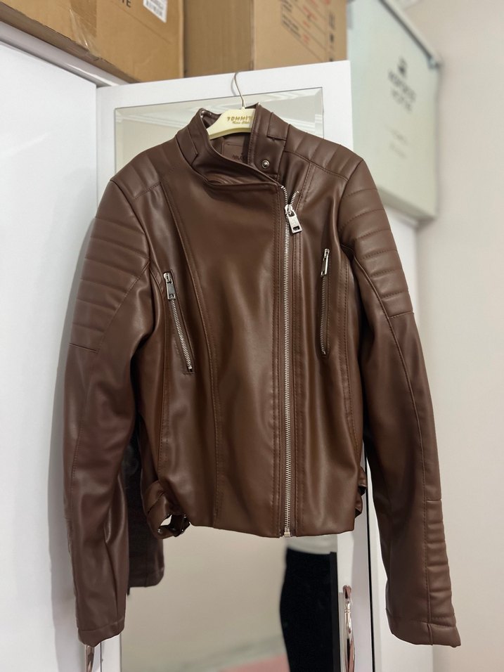 Kahverengi Deri Biker Ceket