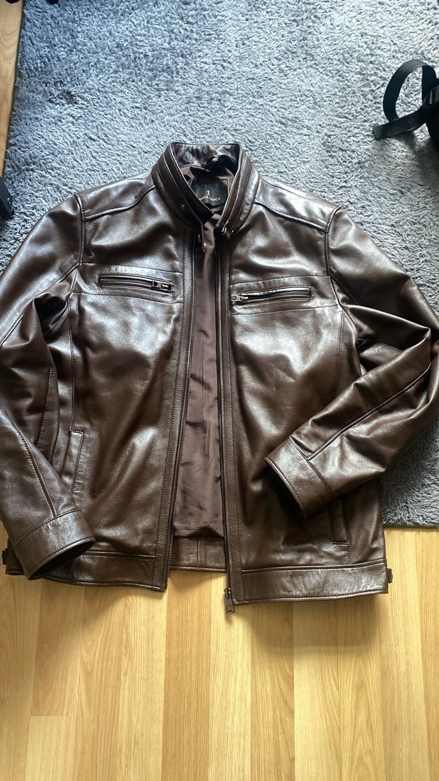 Kahverengi Deri Biker Ceket