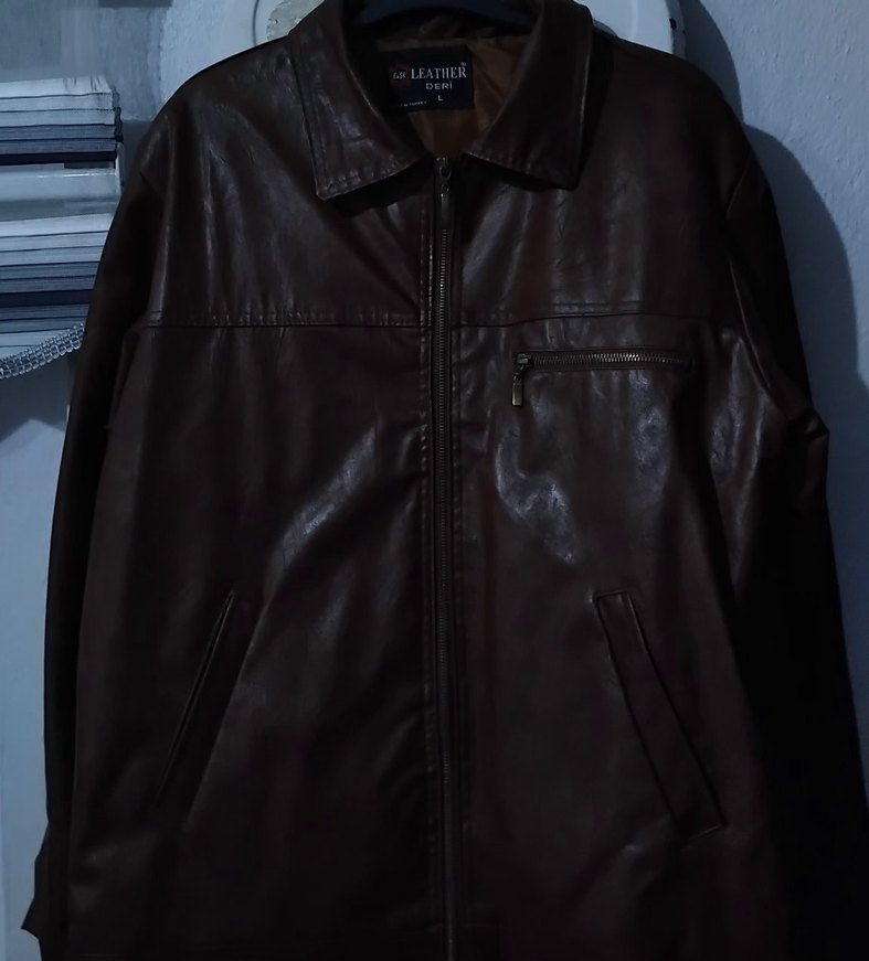 Koyu kahverengi deri biker ceket, kesik yakalı ve fermuarlı ceplidir. Normal kesim ve uzun kolludur, günlük kullanım için uygundur. Kahverengi deri ceket, L bedendir. Temiz kullanılmıştır, herhangi bir yırtık sökük yoktur iç cepi vardır