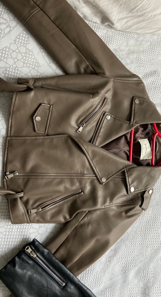 Kahverengi Deri Biker Ceket stradivarius