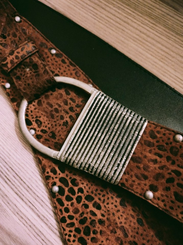 Kahverengi deri, tokalı, vintage bohem tarzda koyu renkli bir kemerdir. Kıyafetlere retro bir dokunuş katar.Kıbrıs'tan almıştım. beden değişimi sebebiyle satılık. sayılı kullanıldı. hiçbir kusuru yoktur. eni en dar 5cm, en geniş 10cmdir. çevresi en geniş 99cmdir. süet deri karışımıdır. #desa #derimod #elle #yargıcı #ipekyol #leopar #kemer