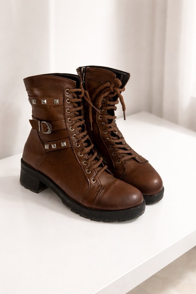 Kahverengi deri, tokalı ve bağcıklı günlük rahat kullanıma uygun. 36 numara çocuk botu botun sıkıntısı yok çokk rahat ipleri biraz yıpranmış olabilir görselden bakın ama değiştirip yeniymiş gibi kullanabilirsiniz