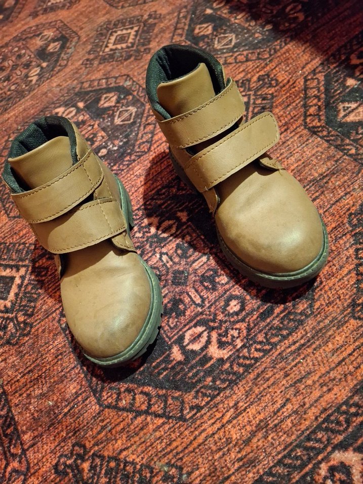 Kahverengi deri çocuk botları, tokalı bantlarla trendy günlük sokak stili için uygundur. Desensiz ve renkli görünüme sahiptir. yeni gibidir