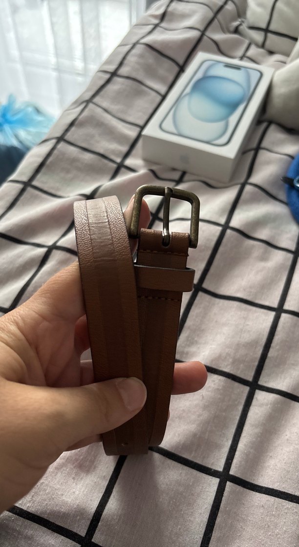 Kahverengi deri çocuk özel, metal tokalı, minimalist sokak tarzına uygun şık kemer.