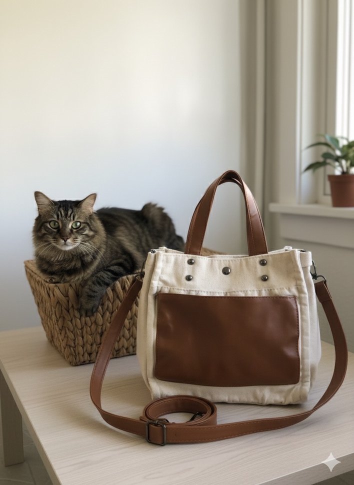 Kahverengi deri detaylı, minimalist ve bohem tarzda kadın çantası. Geniş ön cepli ve ayarlanabilir askılıdır.