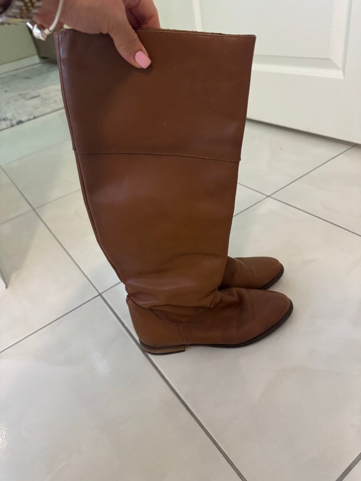 Kahverengi deri dizüstü kadın çizme, minimalist ve bohem tarzda, günlük kullanım için uygun.