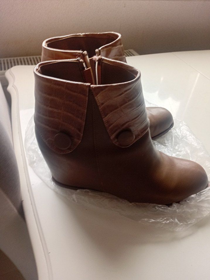 Kahverengi Deri Dolgu Topuklu Kadın Bot
