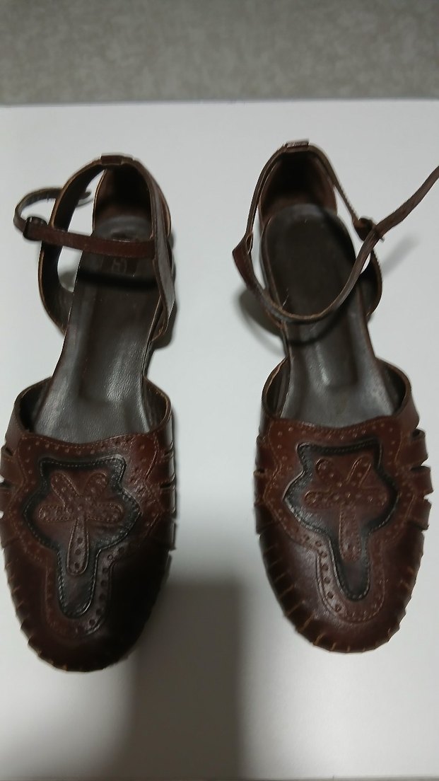 Kahverengi deri dolgu topuklu kadın sandaletleri, toka detaylı ve vintage yılan derisi desenli, günlük kullanıma uygun. sayılı giyilmiş temiz sağlam yeni gibi.