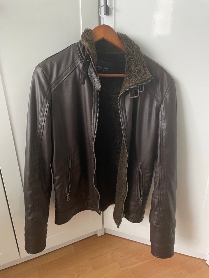 Kahverengi deri, oturtmalı biker ceket, uzun kollu ve yakasında tokalı detaylar bulunur. Normal midi uzunlukta, yumuşak iç astarlı, günlük kullanıma uygun.Fermuarının bozuk olması dışında hiçbir sorun yoktur. Zaranın kaliteli deri ürettiği zamanlardan. eski ancak çok giyilmemiş bir ürün