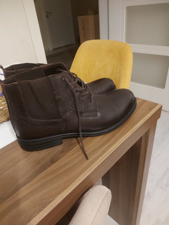 Koyu kahverengi deri erkek botları, tokalı detaylara sahip, günlük rahat kullanıma uygun. Normcore tarzında, trend günlük görünüme uyum sağlar. Bot sıfırdır 44 numara ..