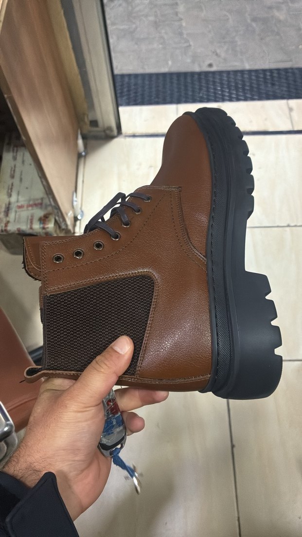 Kahverengi deri, koyu yılan desenli ve kemerli erkek botları, sokak stili ve günlük kullanım için uygundur.