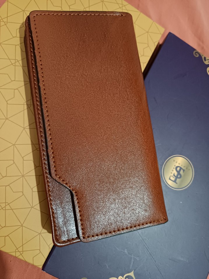 Kahverengi hakıkı deri cüzdan, günlük iş kullanımı için uygundur ve desensiz klasik bir tarza sahiptir.