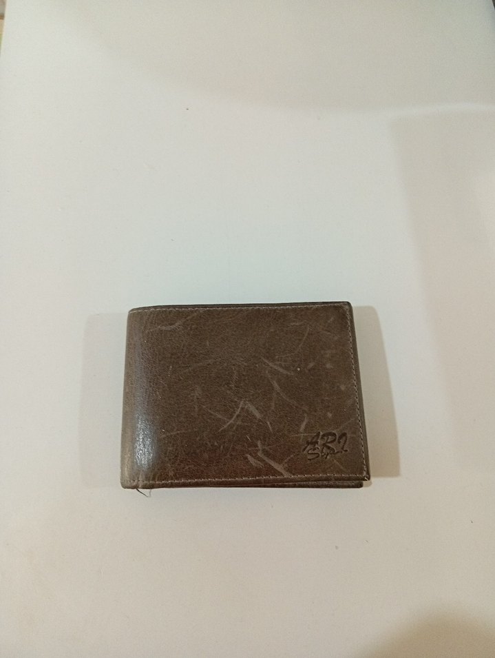 Kahverengi deri erkek cüzdanı, sade ve desensiz tasarıma sahip, minimal ve karşı kültür tarzını yansıtan aşınmış görünümlü. Satın aldım fiyat 800 dü zararına satıyorum