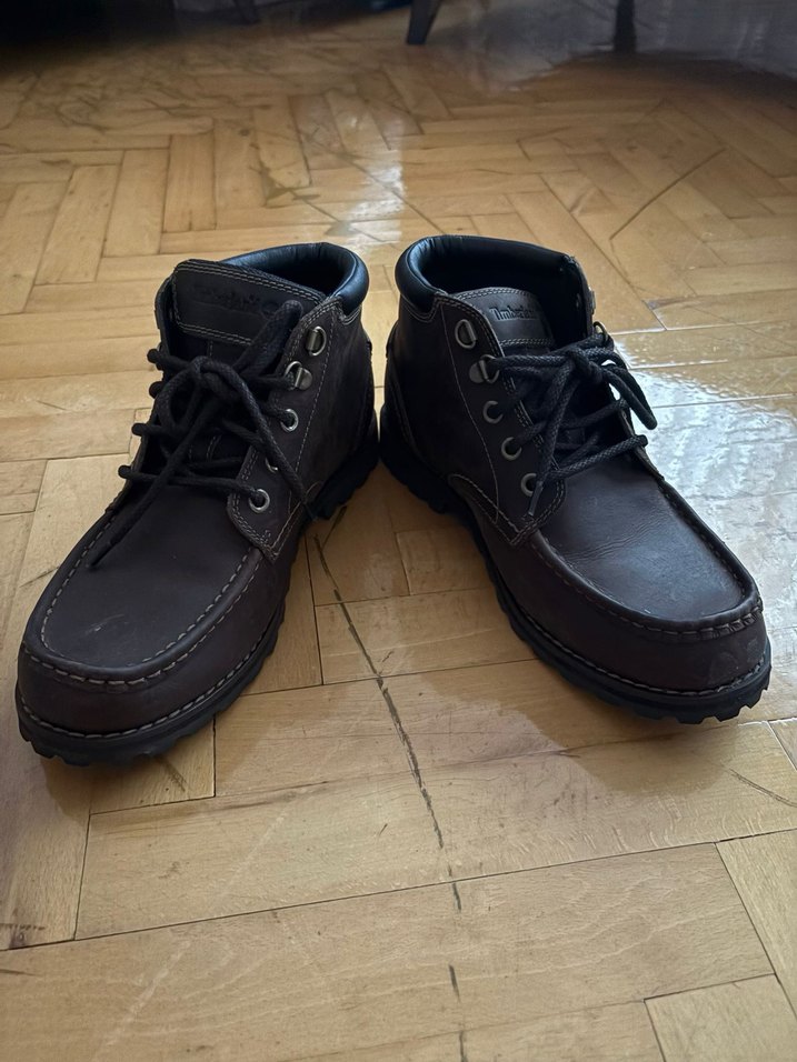 Koyu kahverengi deri erkek botları, tokalı ve bağcıklı, günlük sokak stili için uygundur. Rahat ve sağlam tabanlıdır.