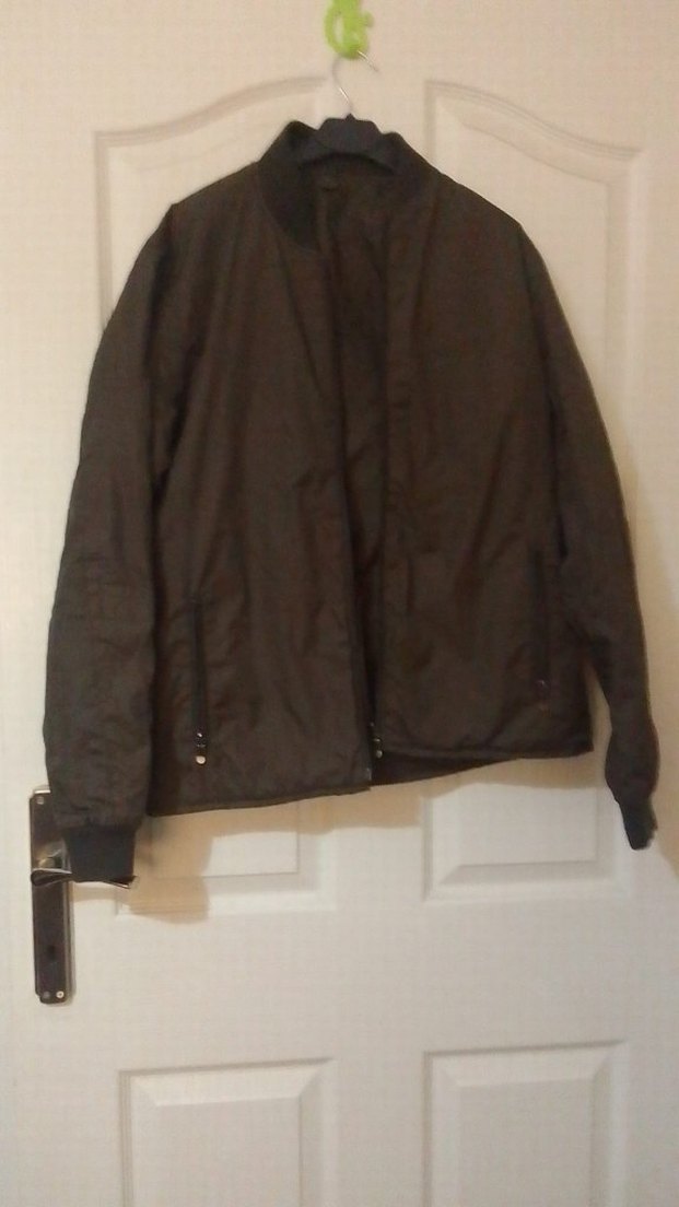Kahverengi deri, kemerli ve normal boyda, uzun kollu, kesimli erkek ceket. Notch yaka ile sokak stiline uygun, günlük kullanıma uygun.