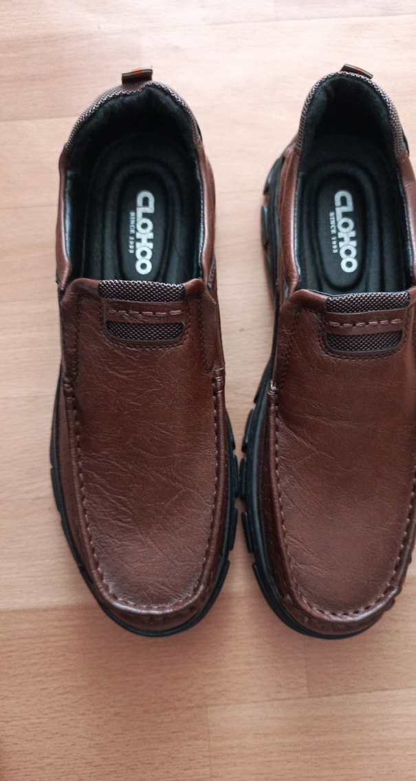 Kahverengi deri erkek klasik ayakkabılar, tokalı detaylı, günlük rahat sokak stili için uygundur. Desensiz, koyu renklidir.