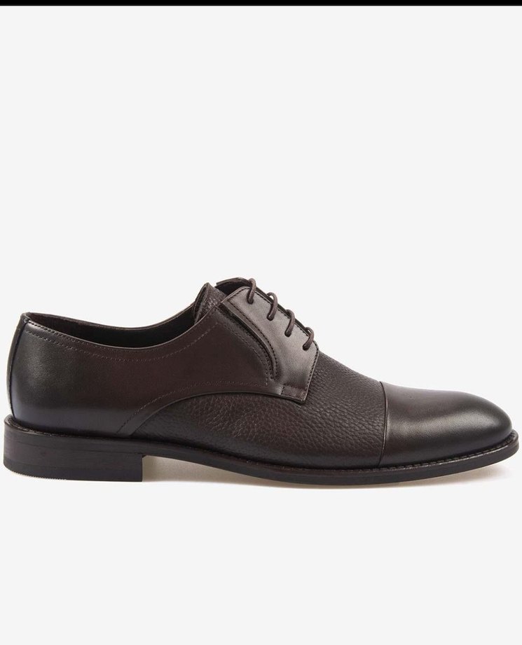 Koyu kahverengi dana deri erkek klasik ayakkabı, desen içermeyen şık tasarım. Modern klasik tarzda, ofis için ideal ve zahmetsiz şıklık sunar. Hedıye geldi. Kullanılmadı.Sıfır ürün.alana şimdıden hayırlı olsun.