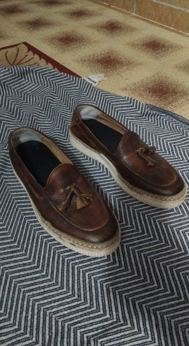 Kahverengi Deri Erkek Püsküllü Espadril