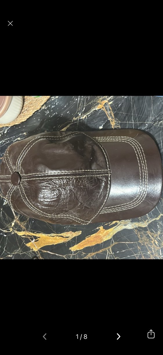 Koyu kahverengi deri kadın ve erkek şapka, , sokak stili ve karşı kültür tarzında.