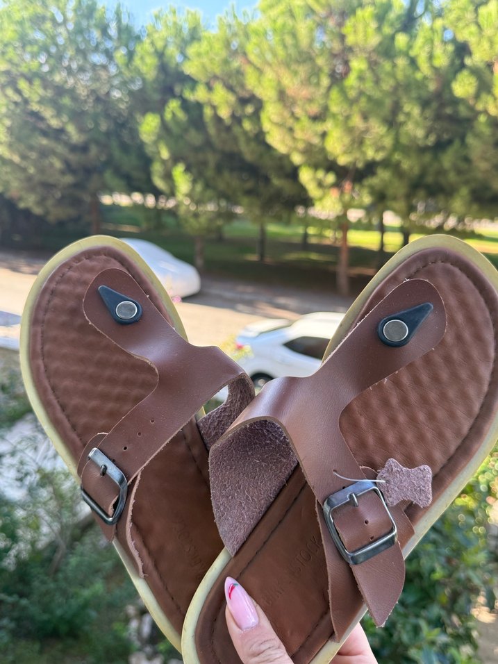 Kahverengi deri, tokalı erkek sandaletleri parlak yüzeye sahiptir. Günlük sokak stiline uygun, minimalist ve bohem tarzda. ÜRÜN DERİDİR VE SIFIRDIR BEKLEDİKÇE ALTI SARARMIŞ SADECE
