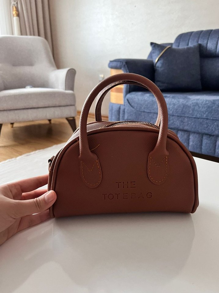 Kahverengi deri, fermuarlı, baskılı kadın çanta. Paris sokak modasına uygun, şık ve günlük kullanıma uygun.