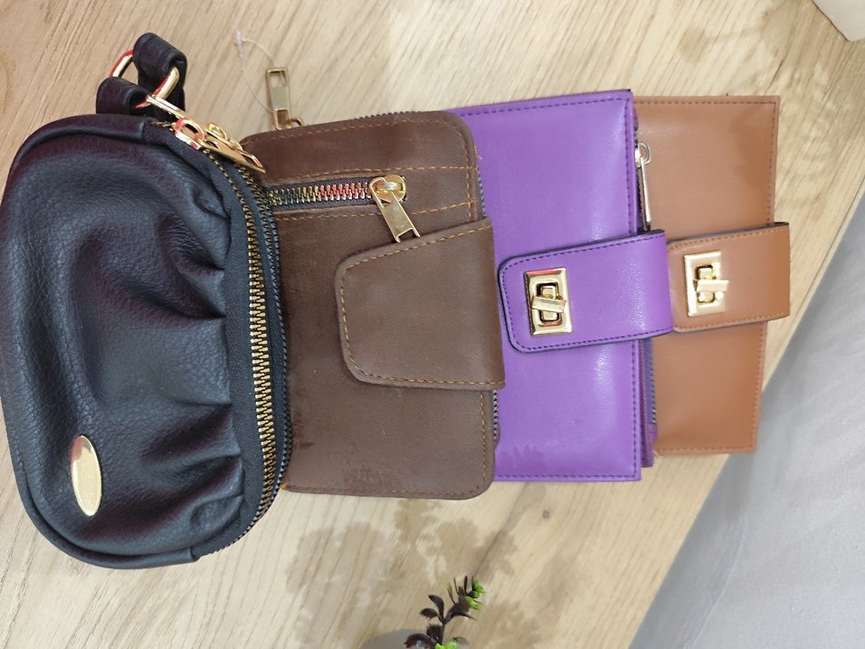 Koyu kahverengi deri kadın cüzdanı, fermuarlı bölmeli ve sade tasarımlıdır, günlük kullanım için uygundur. her biri 200 koyu kahve ve siyah fermuarlı 250