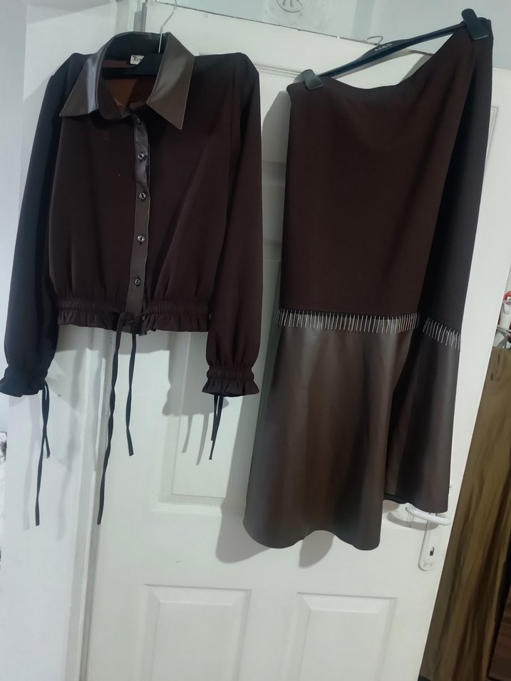 Kahverengi Deri Goth Midi Takım