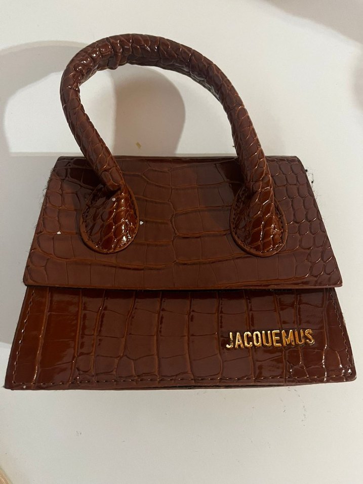 Kahverengi deri, yılan deseni ve tokalı detaylara sahip JACQUEMUS canta (orijinal degil)