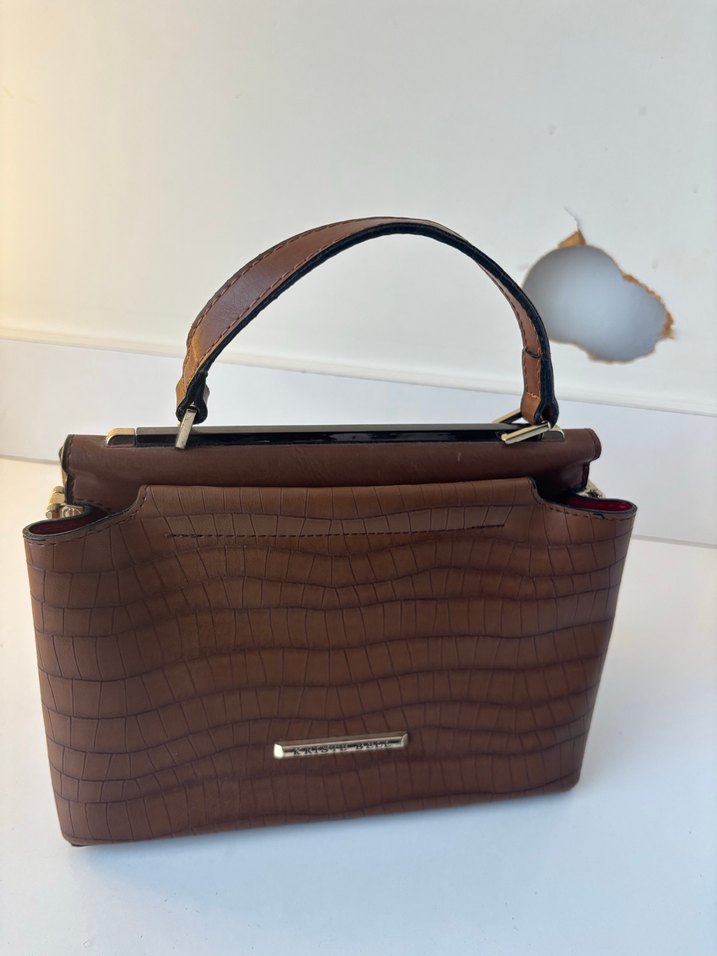 Kahverengi Deri Kabartmalı Kadın Çanta