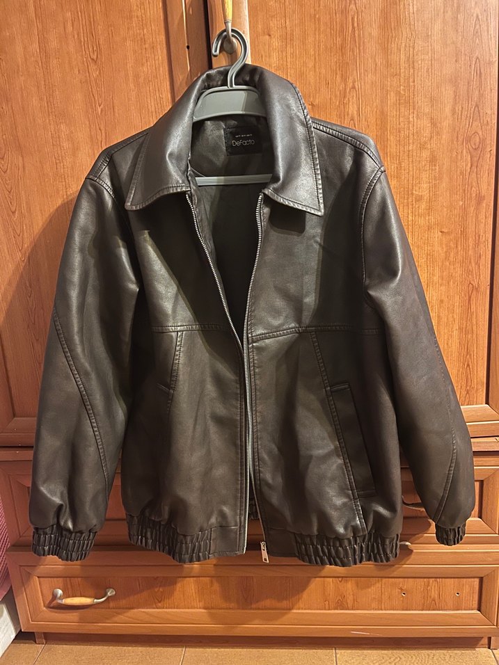 Kahverengi deri biker ceket, yaka kısmında kesik detay ve tokalı özellikler sunar. Normal uzunlukta, uzun kollu ve ofise uygun regular kesimdir.