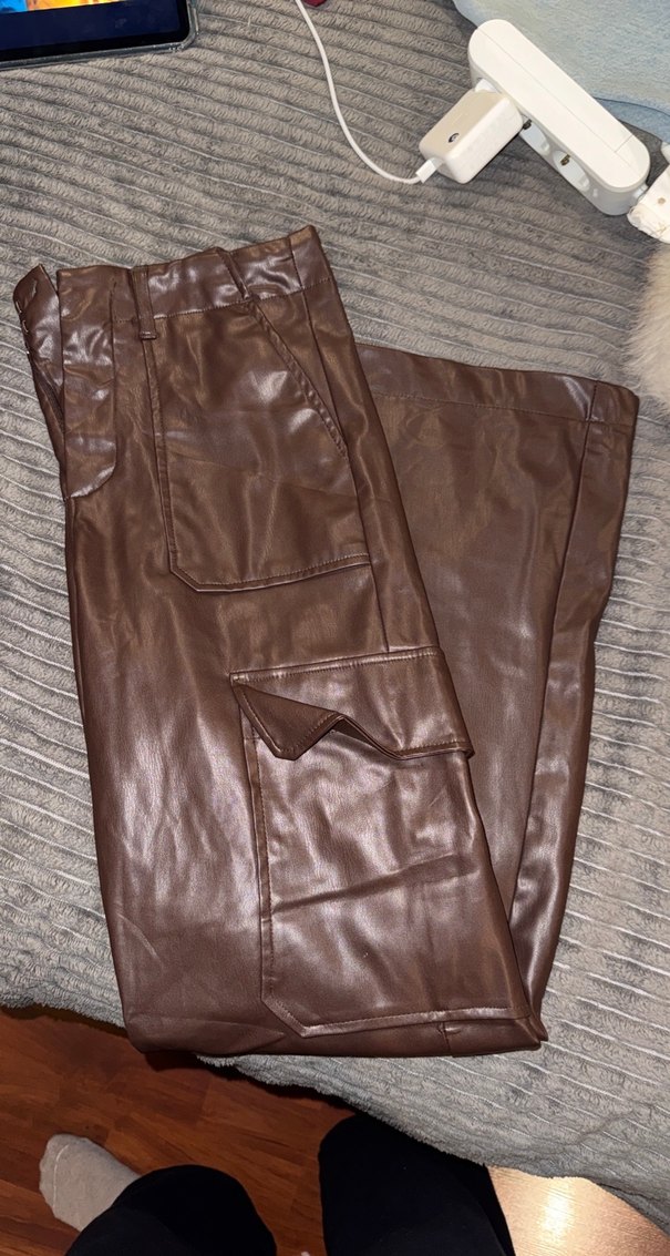 Kahverengi Deri Kadın Bol Kesim Pantolon zara