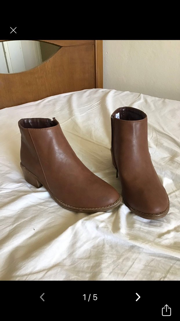 Kahverengi Deri Kadın Bot, Kalın Topuklu