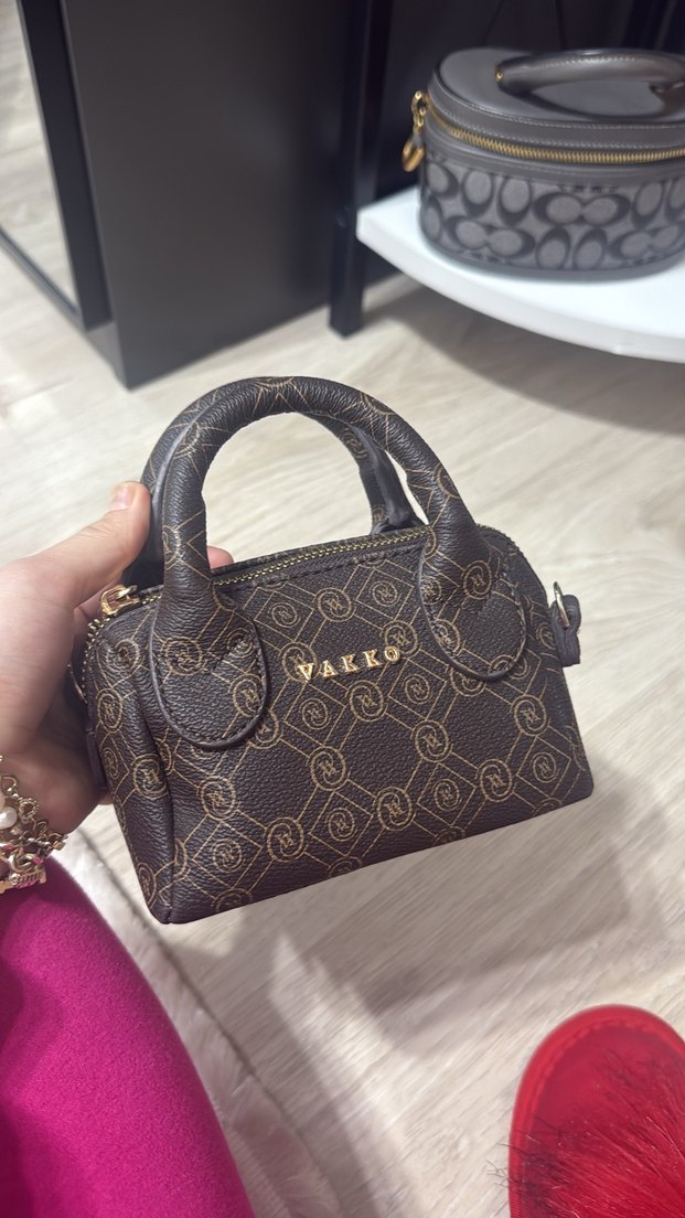 Kahverengi deri, baskılı desenli ve tokalı detaylara sahip kadın çanta. Klasik zarafet ve modern tarzı birleştirir. Günlük kullanım için uygun.