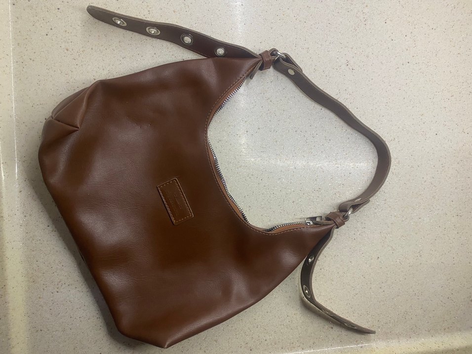 Parlak kahverengi deri kadın çanta, tokalı askıyla minimalist ve trend sokak stiline uygun. Günlük kullanıma uygundur. Housebags marka, deliği deşiği yok, hediye geldi, kullanılmadı.