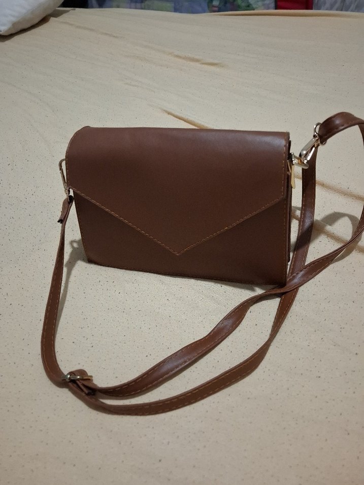 Kahverengi deriden yapılmış, kemerli tasarıma sahip minimalist ve çağdaş tarzda kadın çantasıdır. Düz ve desensiz yüzeye sahiptir, günlük kullanıma uygundur.