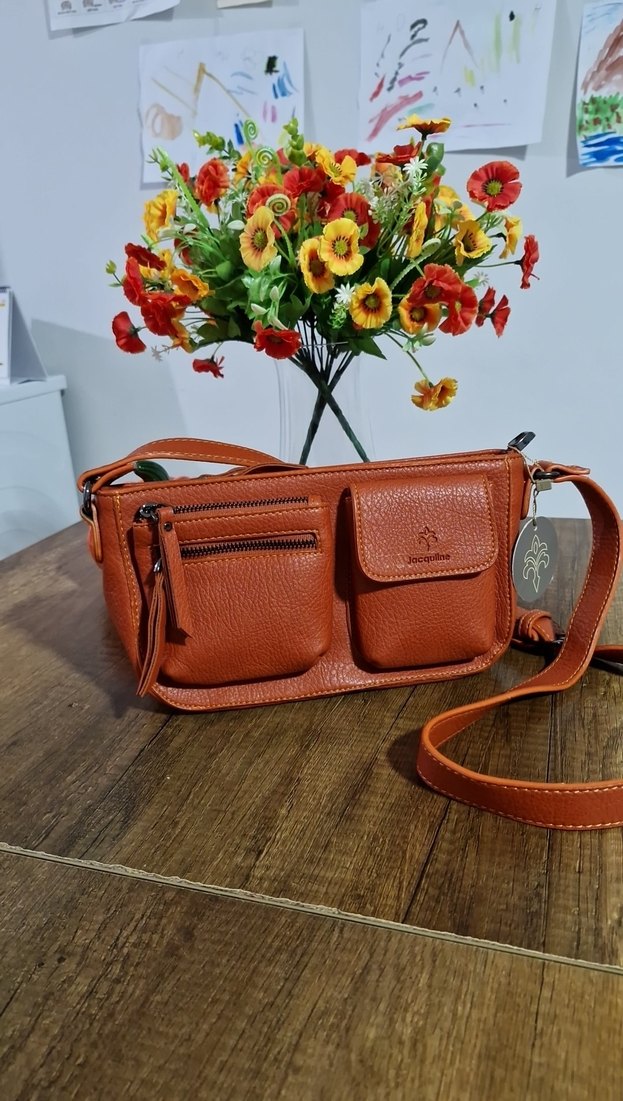 deri kadın çanta, çoklu fermuarlı cepler ve çiçek desenli bohem tarzıyla dikkat çekiyor. Trendy casual görünümler için ideal. orijinal Jacquline gerçek deri internetten asıl fiyatını araştıra bilirsiniz ön tarafında küçük boya lekesi var belli bile olmuyor fiyatın ondan dolayı kırıyorum.
