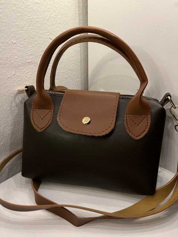 Koyu kahverengi deri kadın çanta, tokalı detaylara sahip ve günlük kullanım için uygundur. Hem elde taşımak hem de askılı kullanmak için uygundur.