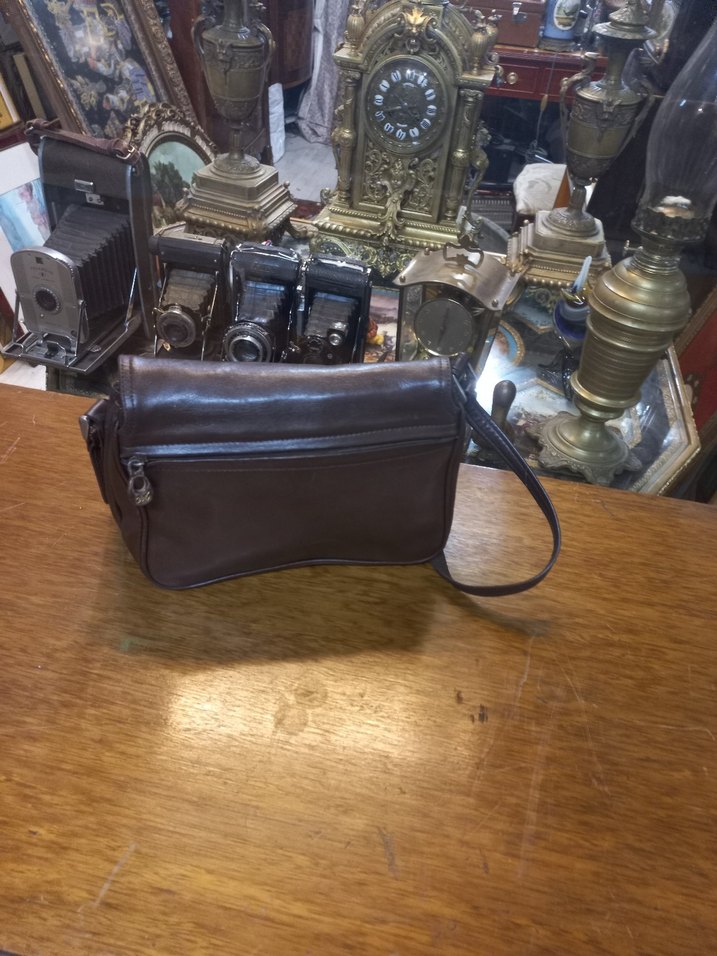 Koyu kahverengi deri kadın çanta, tokalı detaylara ve klasik biker tarzına sahiptir. Desensiz ve günlük kullanıma uygundur.iadesi yok 25×20×10