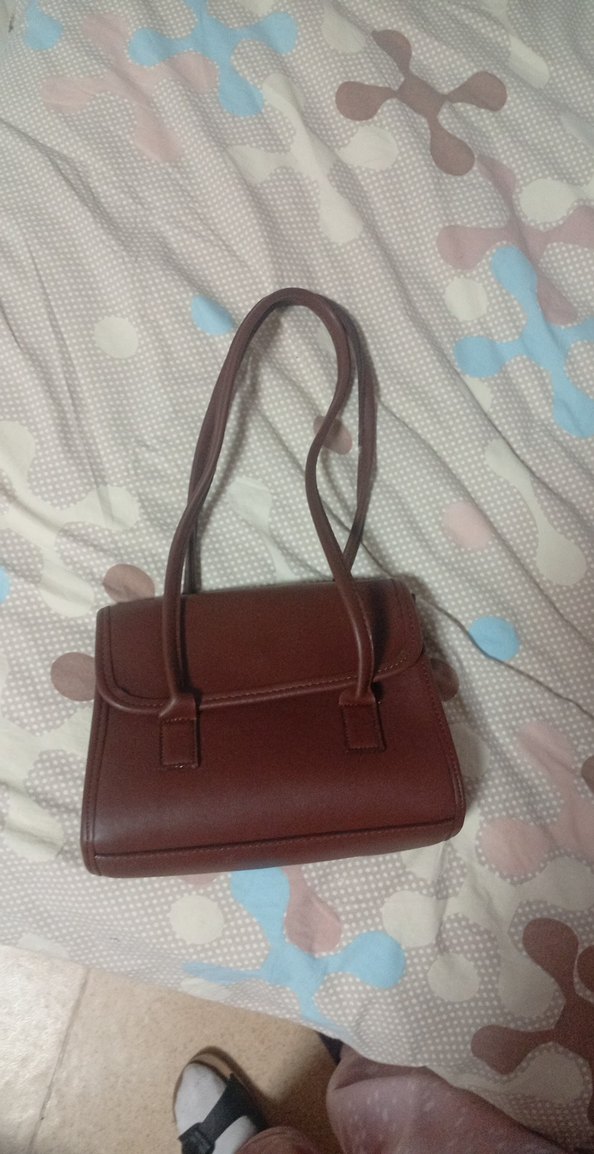 Kahverengi deri, tokalı kapaklı ve uzun saplı kadın çanta, minimalist ve modern klasik tarzda, günlük kullanım için uygundur. Siyah çanta hediyedir