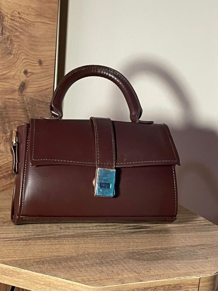 kahverengi deri kadın çanta, tokalı kapanışıyla modern klasik bir tarz sunar ve günlük kullanıma uygundur.
