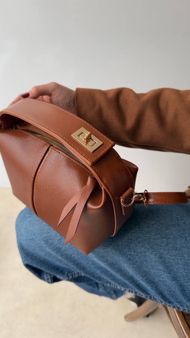 Kahverengi deri kadın çanta, tokalı tasarımı ve minimalist stiliyle günlük kullanıma uygundur. Yumuşak dokusu ve pastel tonu ile trend sokak modasına uyum sağlar.