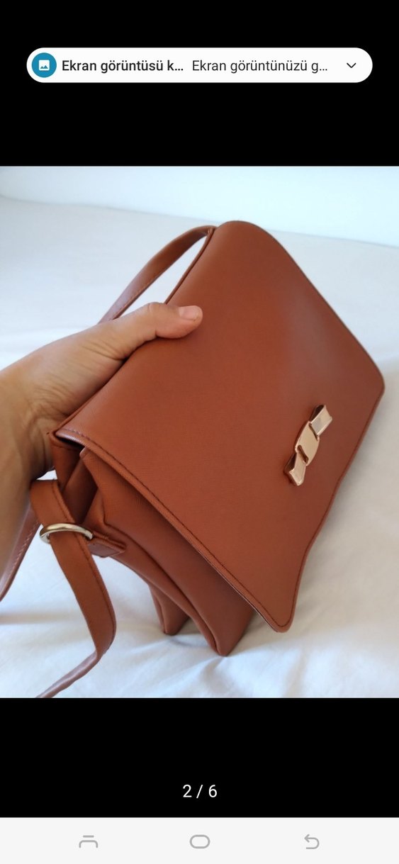 Kahverengi deri kadın çanta, parlak yüzey ve tokalı detaylarıyla minimalist sokak stiline uygun, desensiz ve sade tasarım.