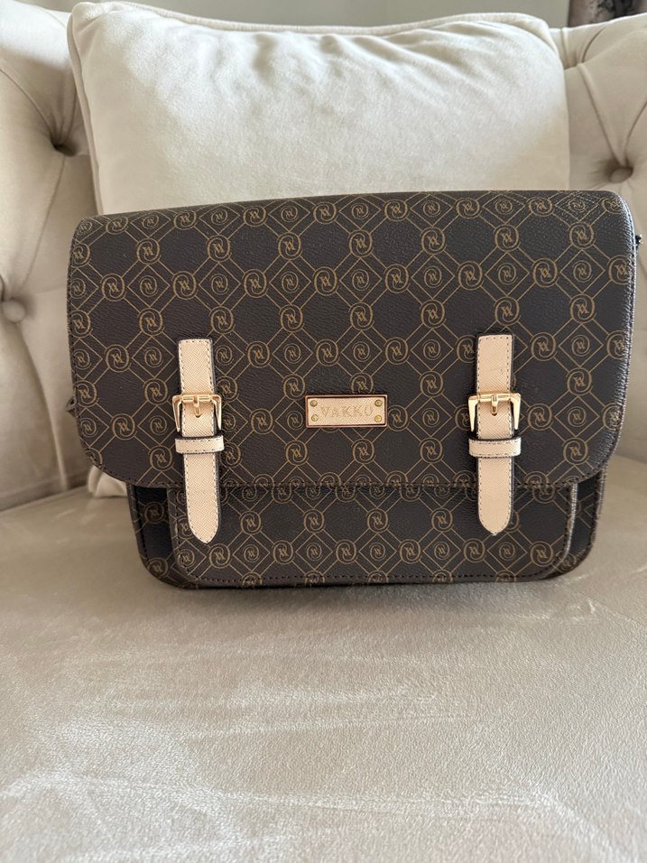Kahverengi çanta, baskılı desenlidir.iç astarında yapışkanda kopma mevcuttur.Resimlede göstermeye çalıştım.Tadilat yapılabilir zamanım olmadığı için yaptıramadım.Replika bir üründür.
