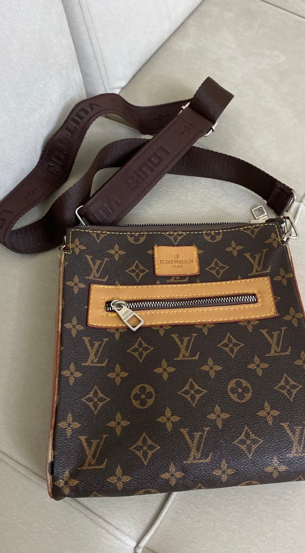 Kahverengi deri, baskılı desenli çapraz çanta. Önünde fermuarlı cep ve ayarlanabilir, marka baskılı askı bulunur. Günlük sokak stiline klasik şıklık katar. Resimde göründüğü gibidir