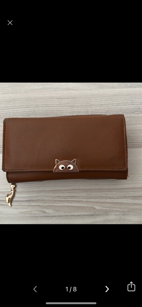 Kahverengi deri clutch cüzdan, fermuarlı ve minimalist leopar detaylı, trend sokak modasına uygun.