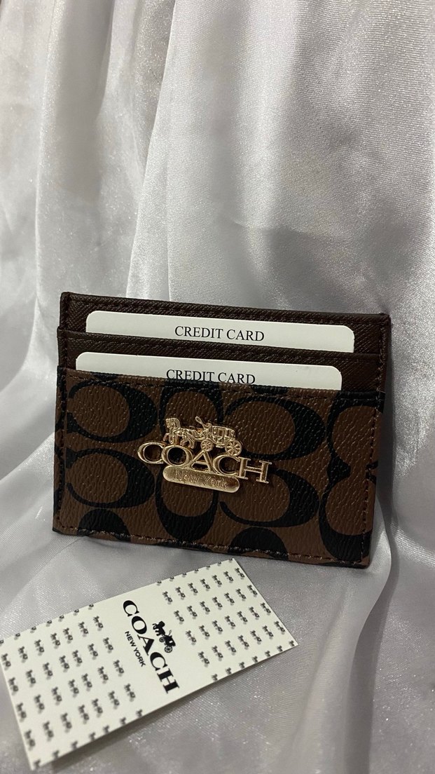 Kahverengi deriden yapılmış, baskılı desenli ve tokalı kadın cüzdanıdır. Kart bölmeleri üzerinde "CREDIT CARD" yazısı bulunmaktadır. Günlük sokak tarzına uygundur.