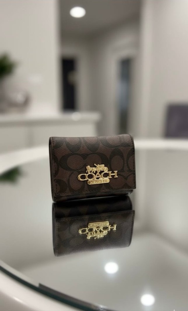 Koyu kahverengi deri kadın cüzdanı, tokalı ve baskılı desene sahip, klasik ve çağdaş tarzda. Günlük kullanım için uygundur.
