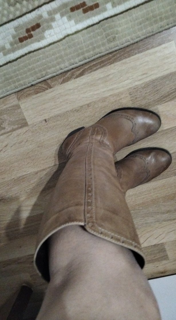 Kahverengi deri dizüstü botlar, stiletto topuklu ve tokalı detaylıdır. Günlük kullanıma uygun, bohem tarzda trend bir görünüme sahiptir.