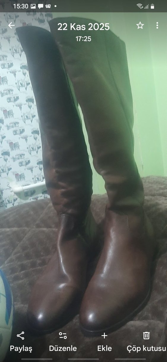 Kahverengi Deri Kadın Dizüstü Çizmeler sıfır hiç giyilmedi