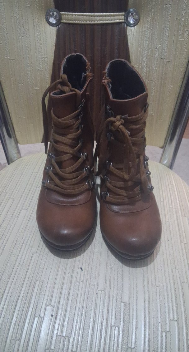 Kahverengi Deri Kadın Dolgu Topuk Biker Bot - Görsel 3